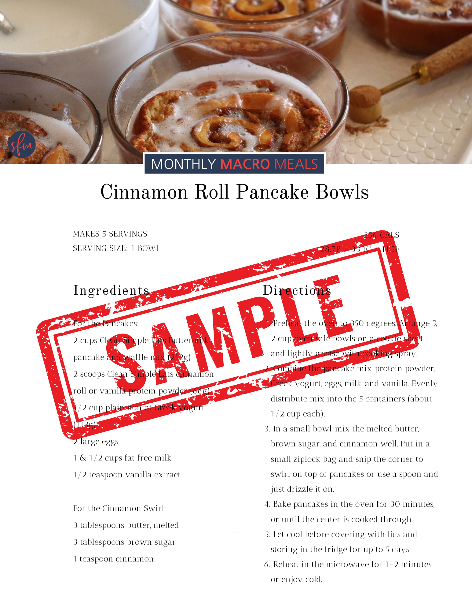 Meal planning for the whole month made easy! Our Monthly Macro Meal Plan is available for purchase each month or as a monthly subscription. Get 20 macro calculated recipes delivered right to your email inbox every single month! All recipes are pre loaded in both Myfitnesspal & the Macrosfirst apps' food databases for easy logging.